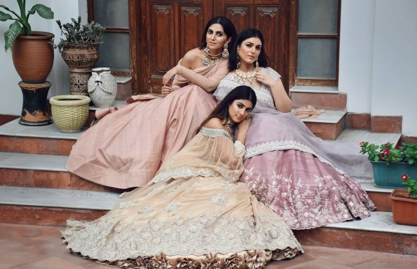 A lehenga will always be “the” attire. There are several different types of lehengas to pick from. You can choose light and delicate colours like light pink or blue or a deeper tone. Flowery suits of floral lehenga cholis can be worn to complement the ambience, or green clothing can be worn to blend in! Pink and pastels are particularly popular colour palettes for these events, but you can use any hue you choose.
