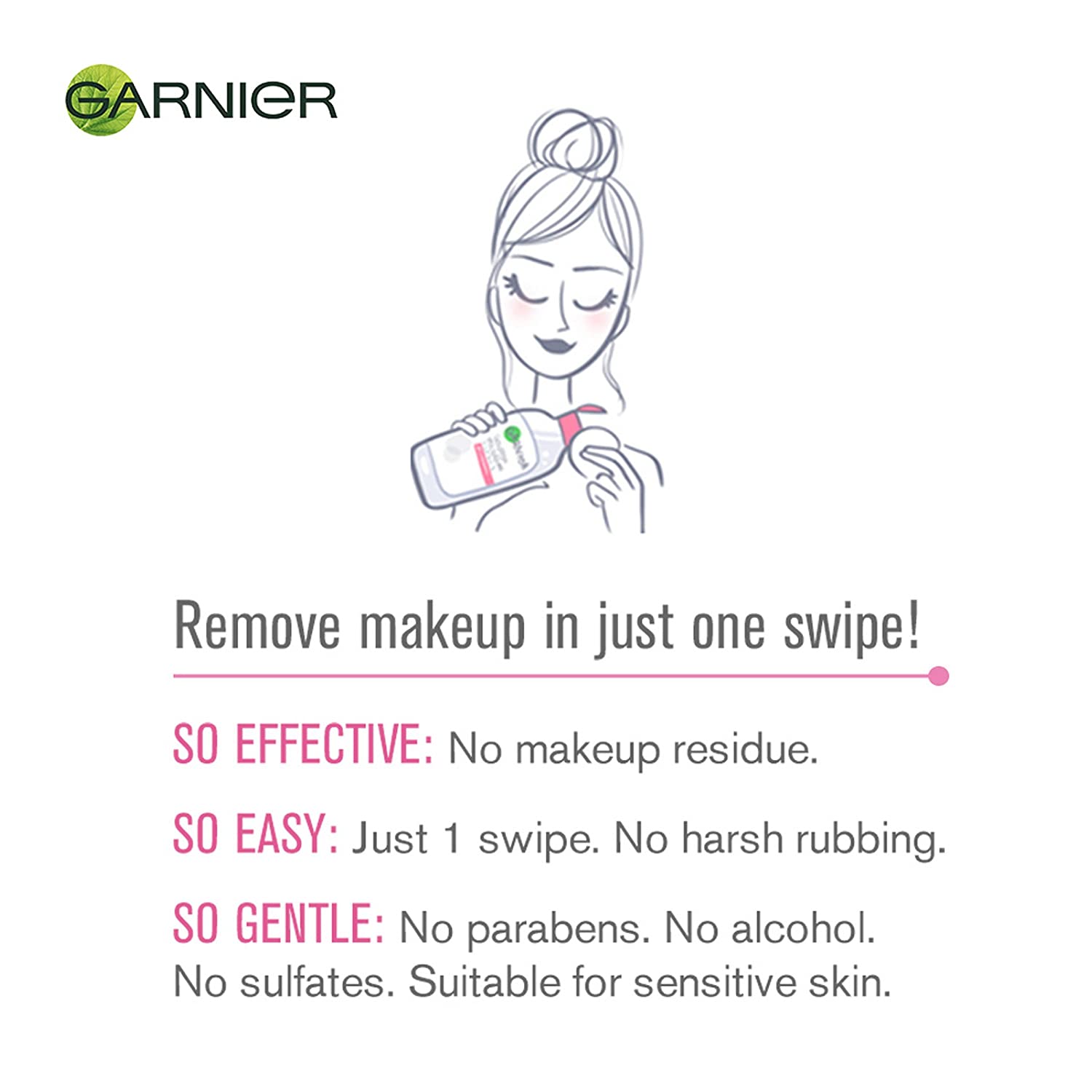 In Garnier micellar water, the makeup removing process is so easy, like pour Garnier micellar water onto