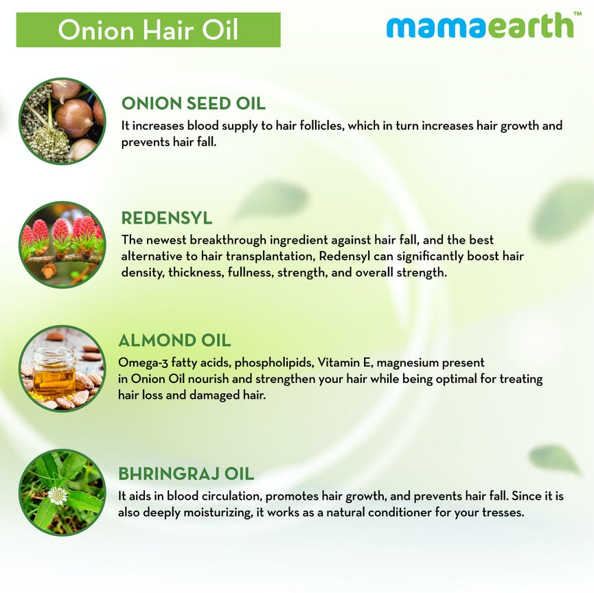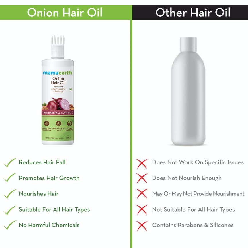 - Mamaearth Onion Oil is tested Dermatologically and contains hypoallergenic properties.